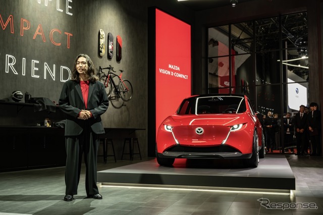 マツダは10月29日、ジャパンモビリティショー2025において、コンパクトカーの『VISION X-COMPACT(ビジョン・クロスコンパクト)』コンセプトを発表した。人の感覚をデジタル化した「人体・感性モデル」と共感型AIとの融合で、人とクルマの絆がさらに深まることをめざしたモデルだ。