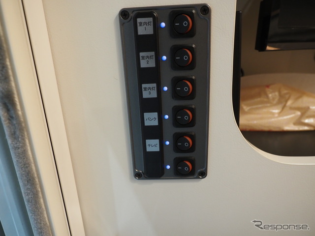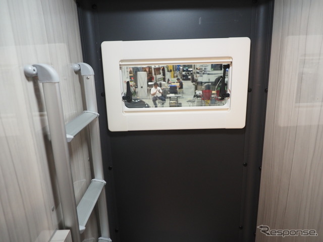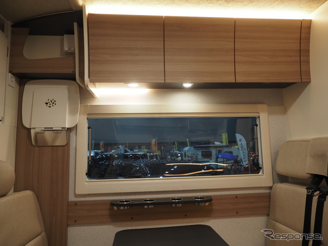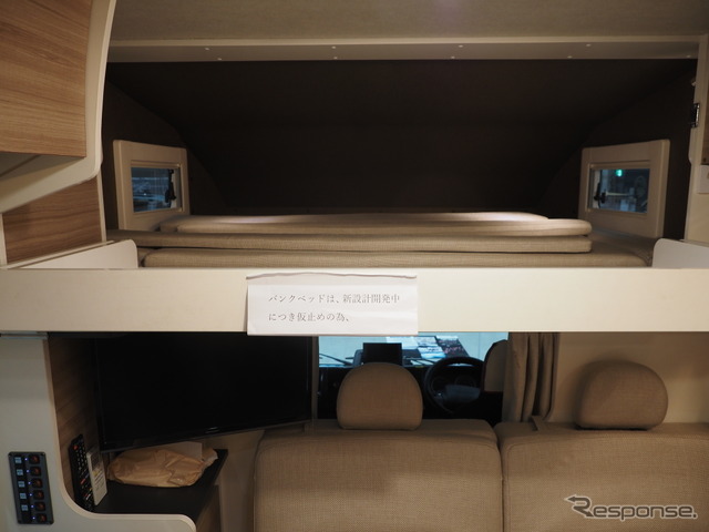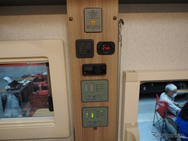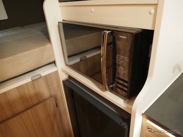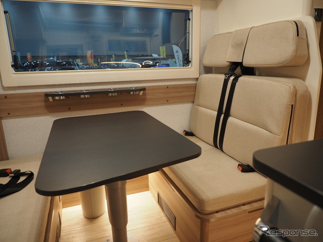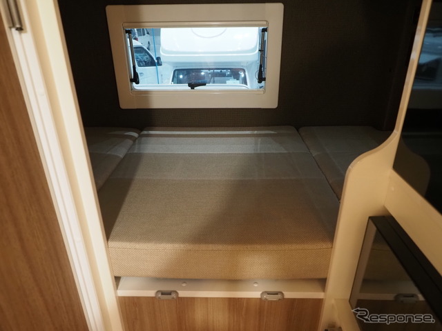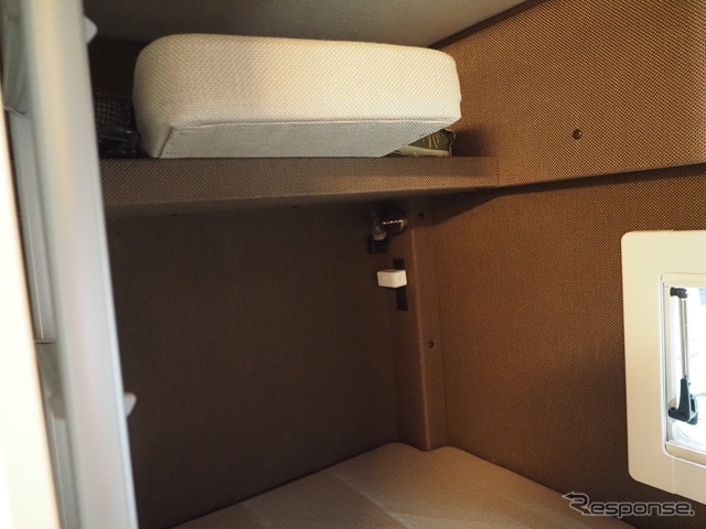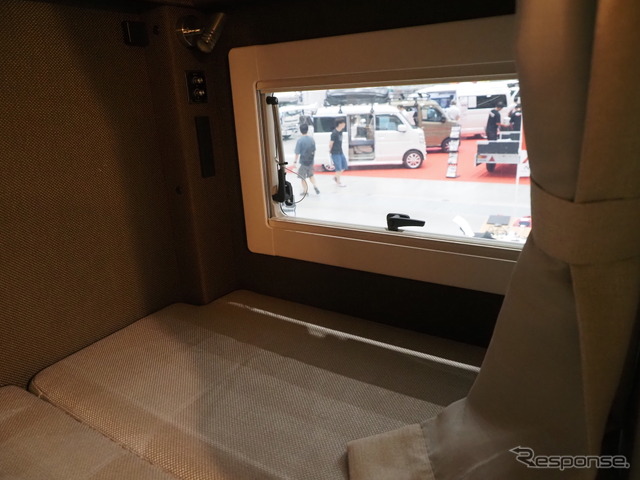 唯一の変更点は、利用者から要望の多かったバンクベッドの拡大。引き出し式でより広く使えるようになる。この部分は、イベントで展示されている車両にも試作として取り付けられており、会場では装備面やレイアウト面などの見た目上は新型ベースのものと変わらない内容が見られる。