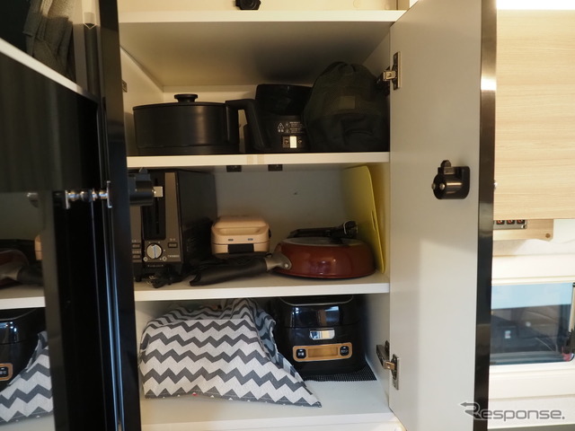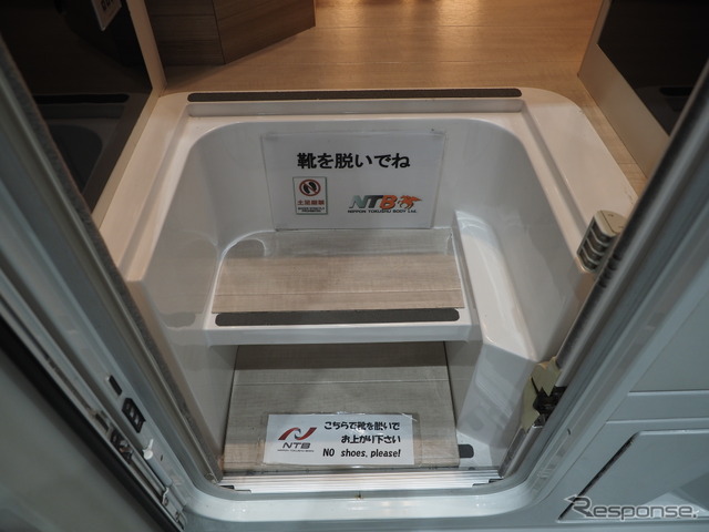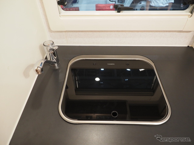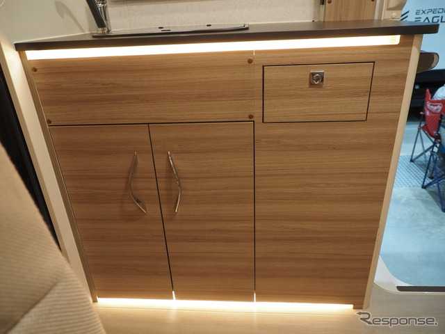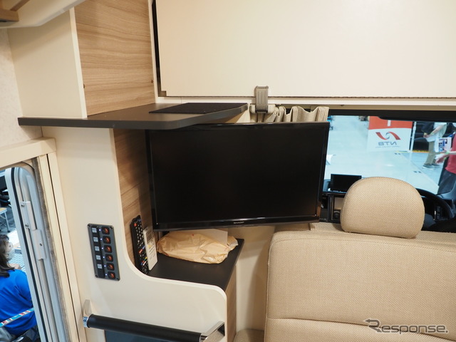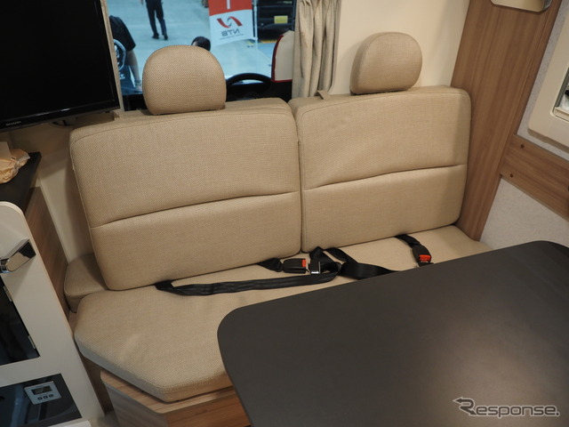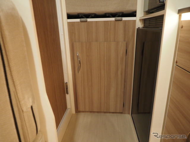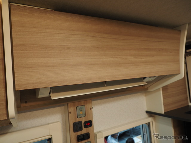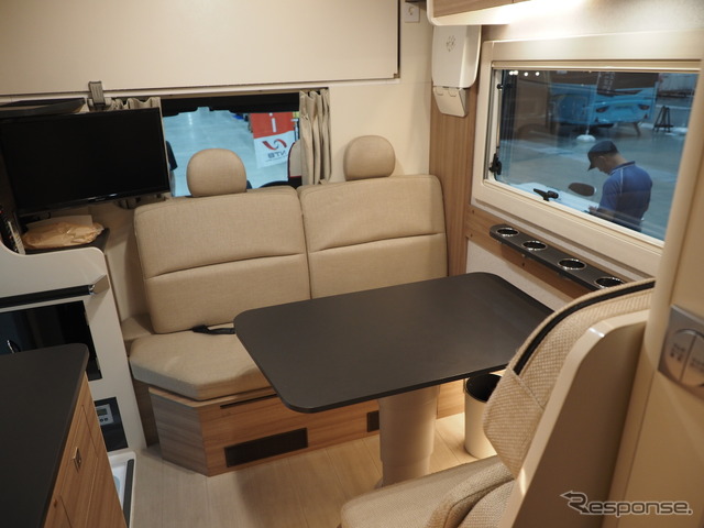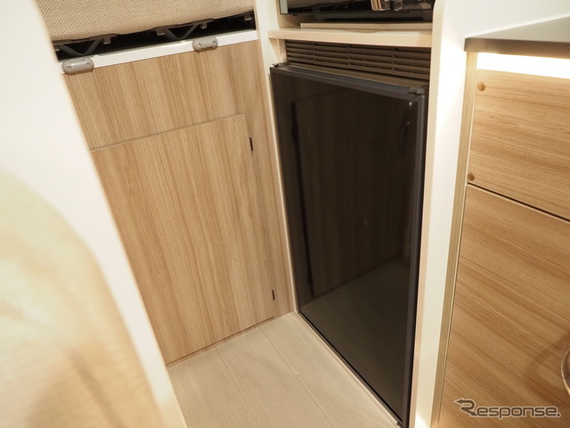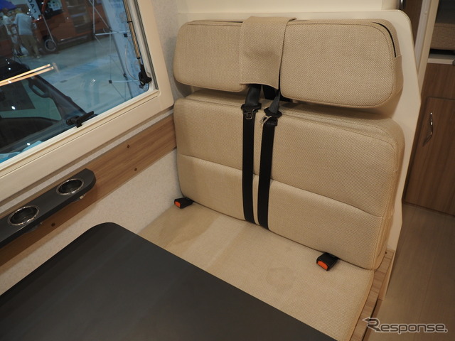 唯一の変更点は、利用者から要望の多かったバンクベッドの拡大。引き出し式でより広く使えるようになる。この部分は、イベントで展示されている車両にも試作として取り付けられており、会場では装備面やレイアウト面などの見た目上は新型ベースのものと変わらない内容が見られる。