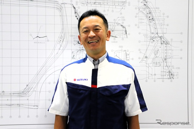 開発責任者のスズキ商品企画本部四輪軽・A商品統括部チーフエンジニアの飯田茂さんは、入社時から13年程エンジン設計で主にエンジンマウント等の開発に携わり、その後商品企画で様々な車種を担当してきた。