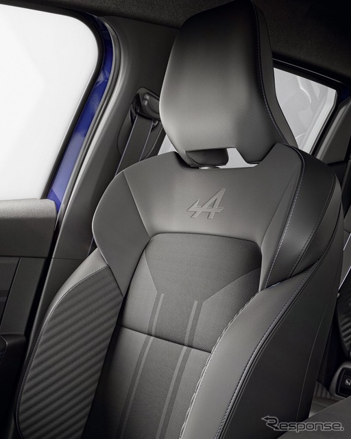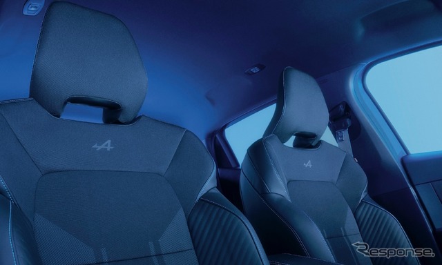 シートはサポート性に優れたバイオスキン×ファブリックのコンビ素材を採用し、前席にはヒーターを装備。アルピーヌロゴ入りの背面デザインも特長だ。
