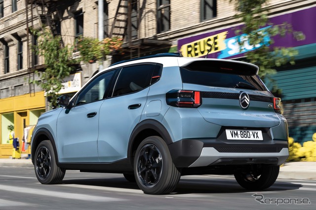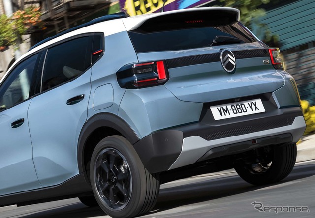 デザイン面では、パリモーターショー2022で披露されたコンセプトカー『オリ』の流れを汲む新世代シトロエンデザインを採用した。リアビューにも新デザインを踏襲し、センターの最新ロゴと“シェブロンライン”が個性的な印象を与える。