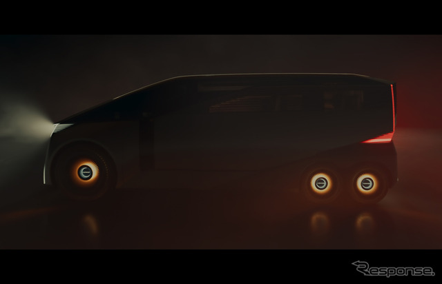 レクサスは、高級車ブランドのフラッグシップの座を新たなセンチュリーに譲ることで、「挑戦する」ブランドへと進化する。その象徴となるのが新型LSだ。これまでの高級セダンのイメージから完全に脱却し、6輪(前2輪、後4輪)のミニバンとして生まれ変わる。豊田会長いわくLSの“S”をセダンではなく「スペース(空間、宇宙)」と捉えることで、唯一無二のラグジュアリーカーとなる。現時点ではコンセプトモデルだが、実現に向けて「本気で」開発が進められているという。公開された画像からは、6輪であること、現行ラインアップのミニバン『LM』よりも明らかに長い全長が確認できる。