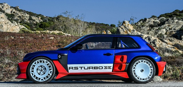 ルノーの電動スーパーカー『5ターボ3E』、初の公開走行…ツール・ド・コルス優勝車カラーで登場
