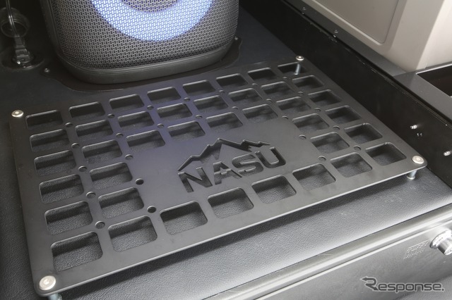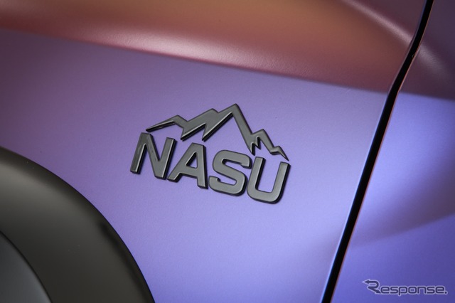エクステリアでは、改良されたボンネットスクープを備えたワンオフボディキットが力強い外観を演出。鮮やかな紫色のカスタムラップは「ナス」の別名を持つ那須を彷彿とさせる。ロックスライダー、カーゴバスケット、改良された可動式ルーフラックなどのオーバーランディング用装備を搭載している。