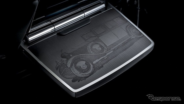 エクステリアでは、スピリット・オブ・エクスタシーをゴールド製で製作し、刻印とエナメル加工を施した1925年製の鋳造を基に再現。ビスポークのギャラリーは、書物のページをめくるような世界観を思わせる抽象化されたテキストをアルミニウムで成形し演出している。