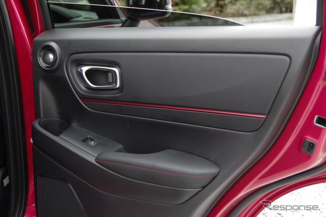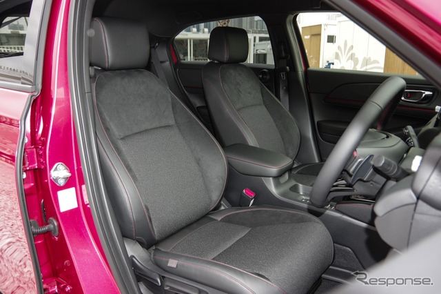 インテリアは、黒を基調に赤のアクセントをあしらい、室内でもスポーティさが感じられる空間とした。本革巻ステアリング、アームレストにレッドステッチをあしらったほか、インパネガーニッシュ、ドアライニングガーニッシュにもレッドカラーを配置。さらにシート表皮には上質かつ耐久性に優れたセーレン社のラックススェードを採用し、質感の向上を図っている。