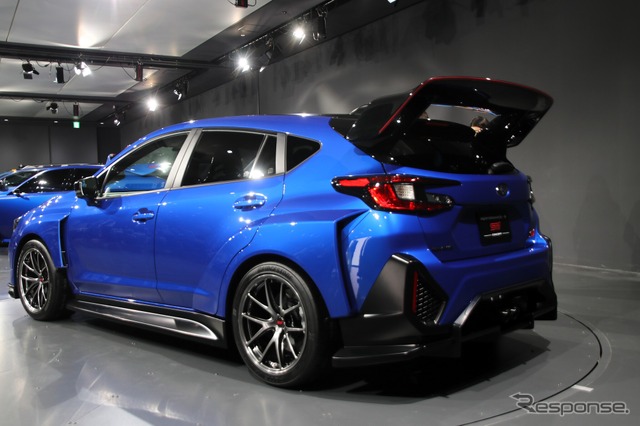 SUBARU(スバル)が現在持っている様々な技術資産を使い、SUBARUのパフォーマンスシーンを象徴する内燃機関をベースにしたコンセプトモデルがこの『パフォーマンスB STIコンセプト』だ。29日、「ジャパンモビリティショー2025」で世界初公開となった。
