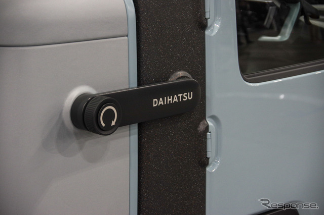 ドアの水色の素材はタオル地で、雨の日に傘を立てかけたりしても水分が吸収できるようにした。またこの意匠はフロアマットに連なり、天の川をイメージさせるデザインを作り上げる。シート下には子どもをあやすための「お菓子ポケット」も用意するなど、ダイハツらしい工夫が至る所に盛り込まれている。
