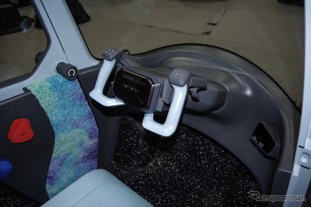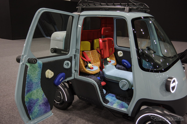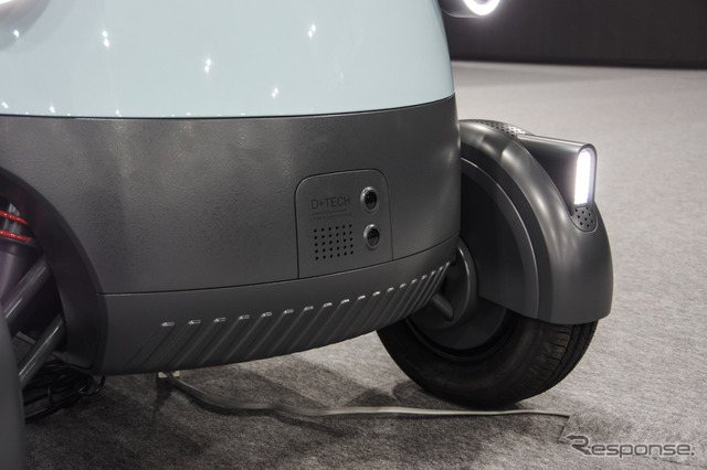 自転車以上、軽自動車未満の扱いやすく安心できるジャストサイズの新モビリティとし、コンパクトなサイズながら1+2シートとした。ボディサイズは全長2200×全幅1295×全高1680mm、ホイールベース1600mm。見るからに小回りが効きそうなスタイリングだ。