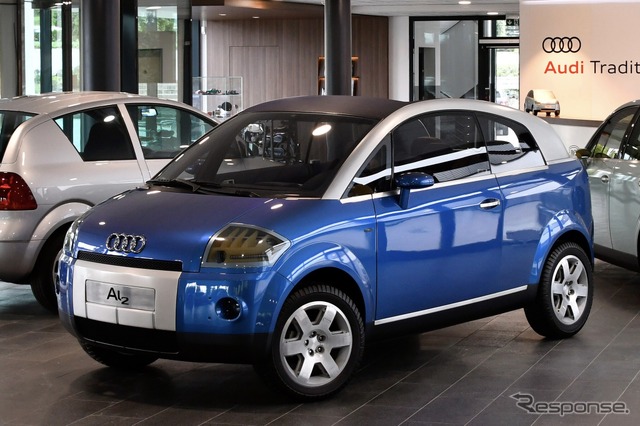 初代であり、これまで唯一のアウディA2は、1999年のフランクフルトモーターショーで発表され、2000年に発売された。1997年に先行発表されていたコンセプトカー『Al2』の生産モデルだ。オリジナルのボディ形状(オールアルミニウム)は2005年まで生産されたが、採算的には失敗に終わっている。