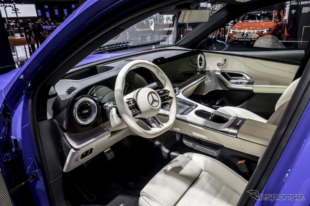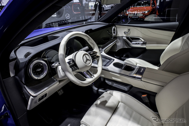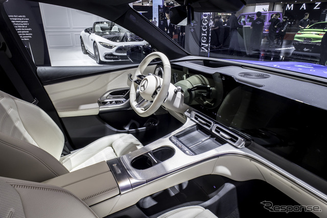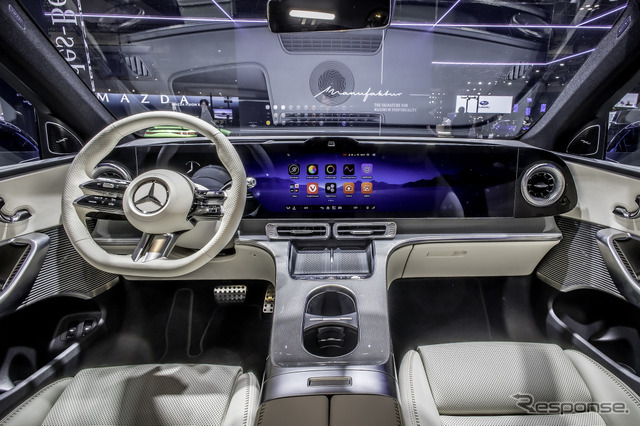 内装では、メルセデスベンツのデザイン哲学「センシュアル・ピュリティ」を新たなレベルに押し上げた。浮遊するような新しいシームレスMBUX HYPERSCREENが、デジタルエレガンスによる印象的で没入感のある空間体験を創出している。