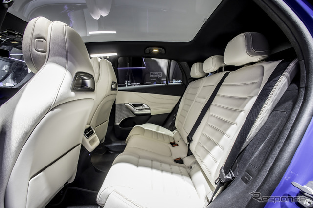 EVとして登場した新型GLCは、従来の内燃エンジン車と比較してホイールベースが84mm長くなっている。その結果、前席では足元スペースが13mm、頭上スペースが46mm拡大し、後席では足元スペースが47mm、頭上スペースが17mm広くなった。