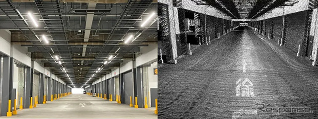 実証実験の実施施設は物流倉庫「東京流通センター A棟」で、計測車両を走行させて収集した施設内の高精度地図用点群データを活用している。