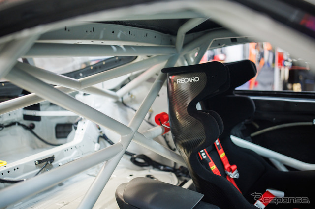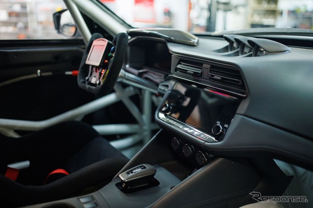 インテリアは完全な競技仕様となっており、RECARO P1300GTカーボンシート、ロードレース仕様のロールケージ、NISMO製レーシングハーネス、MoTeC製のダッシュボードとキーパッドを装備。安全性を重視したFireSafe消火システムも搭載されている。