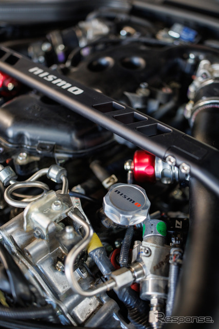 サスペンション系統では、NISMOコイルオーバーサスペンションキット、調整式フロント・リアコントロールアーム、パフォーマンススウェイバーなど、NISMOカタログから厳選されたパーツを採用。ホイールには試作品のNISMO LM-RS1(18インチ×10.5インチ +22)を装着し、ヨコハマADVAN A052タイヤを組み合わせている。