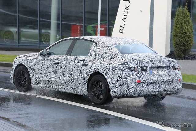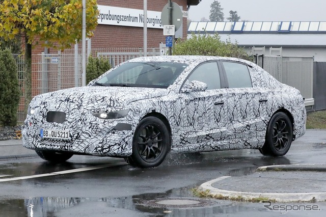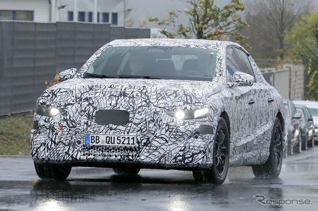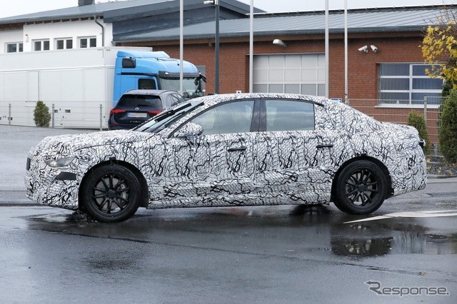 撮影されたプロトタイプは厳重にカモフラージュされ、同じく開発中の『CクラスEQ』に類似しているが、CクラスEQは2026年第2四半期に生産開始予定で、EクラスEQの登場はそれからだ。プロトタイプをよく見ると、従来タイプのドアハンドルやAピラー基部に配置されたサイドミラーなど、様々な変更点が確認できる。EクラスEQでは全長が長く、ベルトラインもフラットになっているようだ。