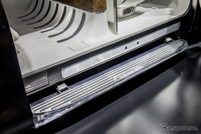 Vision Vの特徴的な要素は、右側の大きな自動開閉式ポータルドアと、照明付きの格納式ランニングボードである。これにより、高級感あふれるリアラウンジへの乗り降りが容易になる。インテリジェントな調光ガラスパーティションにより、「プライベートラウンジ」と運転席エリアを必要に応じて区切ることができる。