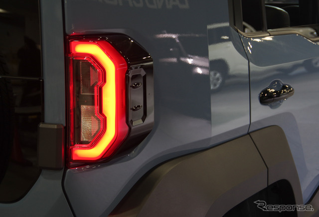 その特徴のひとつとして、外に飛び出したリアコンビランプを挙げる。「室内空間をなるべく広くしようとすると、ランプが中に入っているとその分スペースをとってしまいますから」と機能重視であることを強調。同様に背面タイヤも、「(床下などに収納すると)アプローチアングルを削ってしまいます。このクルマはなるべくショートにしたいですし、自信あるフレーム車です。そして室内はスペースをいっぱいに取りたい。そうするとスペアタイヤはどこに置くのかと突き詰めると背面タイヤになるんです」。