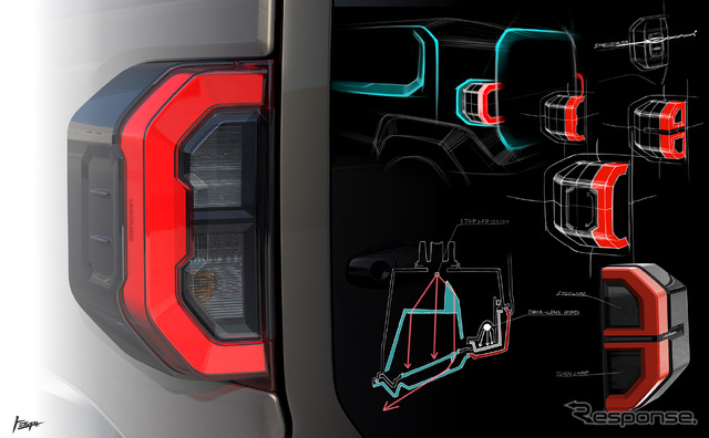 フロントだけでなくリアについても「どこから見ても新しいランドクルーザーという佇まいを目指した」。その原点となったのは『FJ40』だ。「ランドクルーザーの起点であり、ランドクルーザーの知名度をここまで上げてきてくれたクルマ」としたうえで、「ランドクルーザーでありながらプレイフルな感じもありますので、そこに、新しい時代に合った価値観を取り入れました」。「時代が変われば提供するものも進化していかなければいけません。『ランドクルーザー70』のようにずっと変わらない形もありますが、FJのように新しいお客様に向けて出すものは、新しい価値観を入れなければいけない。そこで特にリアはとてもアイコニックにしています」と話す。