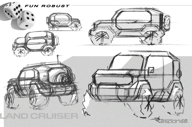 このクルマの車両コンセプトは「Freedom&Joy」。これをキーワードに「サイコロのようなモチーフ使って、アイコニックで新しいプロダクトとしてランドクルーザーの名前にふさわしいデザインにした」とデザイナーは語る。
