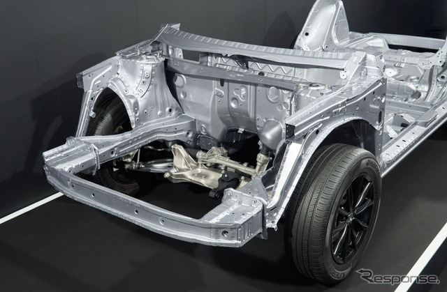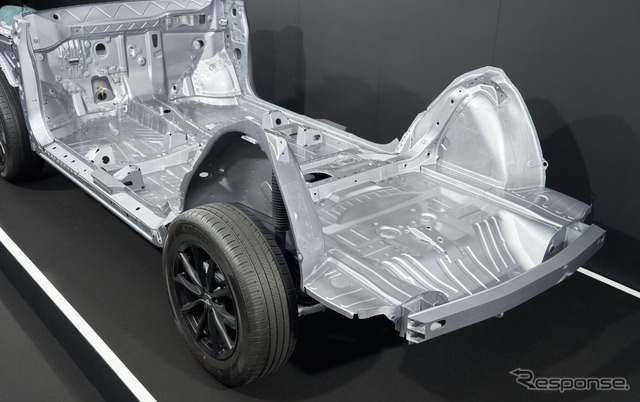 車体構造の見直しと新たな設計手法により、ハイブリッド車向けプラットフォームの重量を現行モデル比で約90kg軽量化。走りの楽しさと燃費性能の両立を実現する。