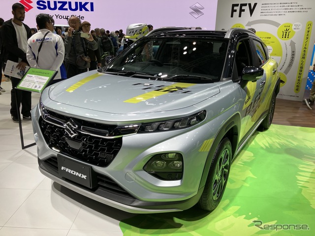 スズキはジャパンモビリティショー2025において、『フロンクスFFV』コンセプトを公開した。FFVはフレックス燃料車のことで、エタノールとガソリンの混合燃料で駆動し、かつ、その混合比をフレキシブルに設定できるというもの。