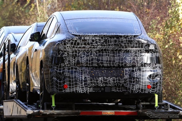 新型車の iX4は、スクエアなルーフを持つ iX3の、よりスポーティな兄弟として設計されている。カメラが捉えたプロトタイプは、厳重なカモフラージュが施されているものの、ヘッドライト、グリル、バンパー、ボンネット、フェンダーなどは、iX3から受け継がれているように見える。