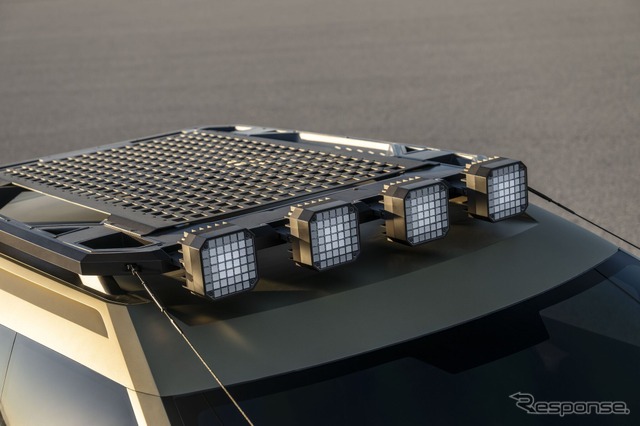 18インチホイールは六角形の小惑星が金属面に衝突してクレーターを残すイメージからデザインされ、33インチのオフロードタイヤを装着している。ワイドなスキッドプレートが車体下部を保護し、ルーフプラットフォームには補助照明や追加収納などのオフロードアクセサリーを取り付けられる。