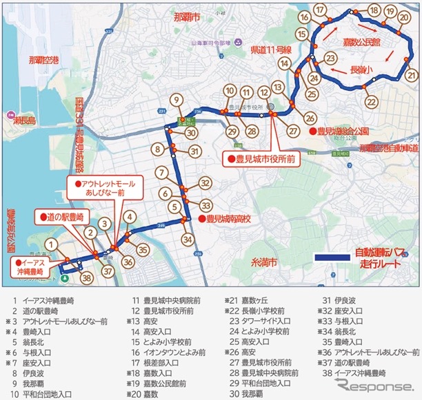 豊見城市、第一交通産業、NEC、電脳交通、ティアフォーの5者は11月28日、沖縄県豊見城市内で自動運転EVバスの有償運行を開始した。2026年2月15日まで運行する。