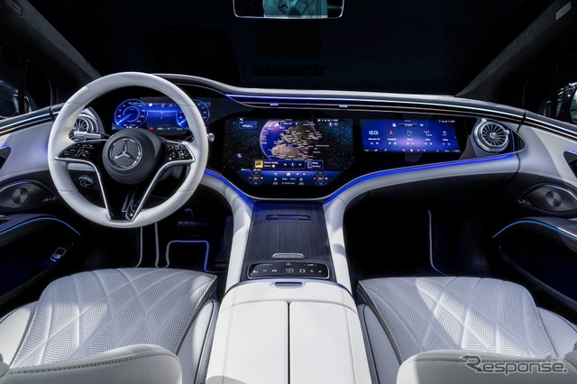 EQSと改良新型Sクラスとの大きな違いは、Sクラスのダッシュボードには物理的なエンジンスタート/ストップボタンが搭載されていることだ。ステアリングホイールも新しくなり、オーディオの音量調節用の物理的なロッカースイッチが追加される。