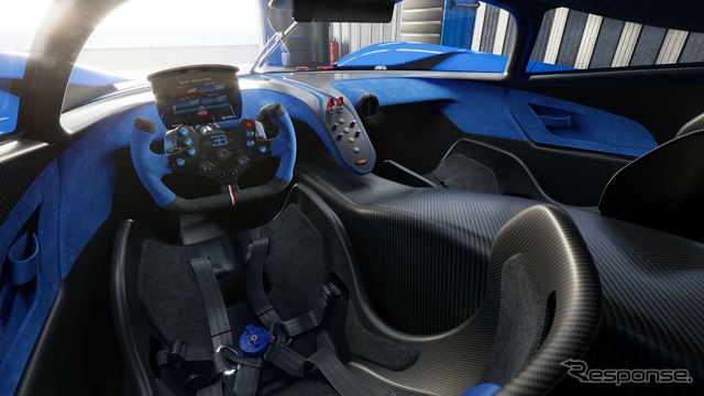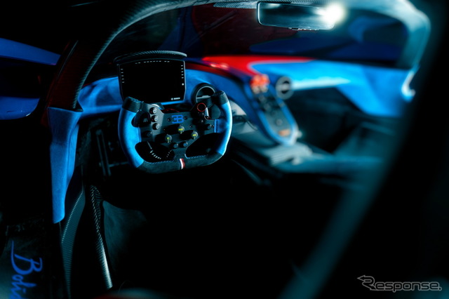 ブラックブルーとスペシャルブルーリヨネの外装ディテール、レイクブルーのアルカンターラをインテリア全体に配した特別仕様で仕上げられたこの最終ボリードは、コレクターとブランドの関係を反映している。車両側面のフランス国旗からライトブルースポーツのインテリアステッチまで、各要素はモータースポーツへの個人的な情熱とブガッティのレーシングヘリテージの両方を物語っている。