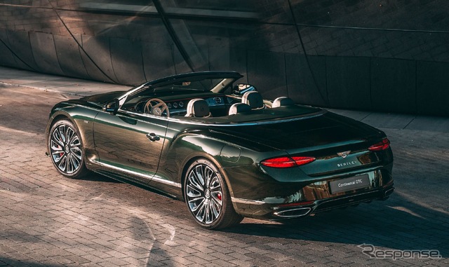 レンブラントの1642年の傑作「夜警」にインスピレーションを得た1台目は、ミッドナイトエメラルドの『コンチネンタルGTコンバーチブル』。絵画の中心人物であるフランス・バニング・コック隊長の赤い帯は、インテリアのホットスパーレッドのアクセントレザーに反映され、副官のコートの色はマグノリアのメインレザーの選択に影響を与えた。これはカンブリアングリーンのセカンダリーレザーと美しいコントラストを成している。