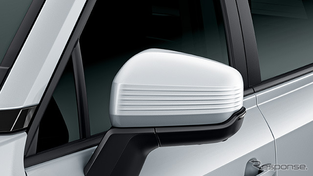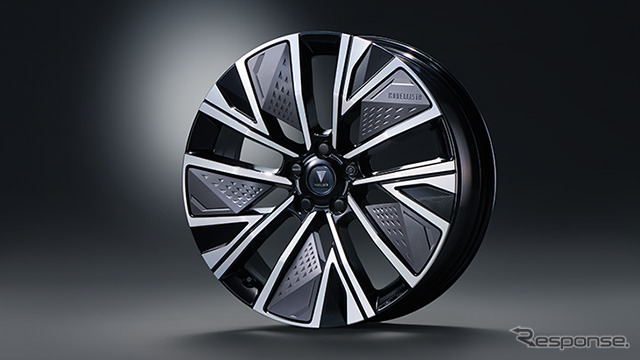 アウターミラーカバーは横方向に精緻なレリーフを通し、スタイリッシュなアクセントを付与。全体をボディカラーにすることでアーバンテイストなスタイルを演出する。20インチアルミホイールセットはエッジの効いたキレのある切削面により、軽快なイメージと大口径感を創出。切削面の間には、トライアングルレリーフを掘り込んだグロスグレーの樹脂加飾を配し、先進的な個性を際立たせる。