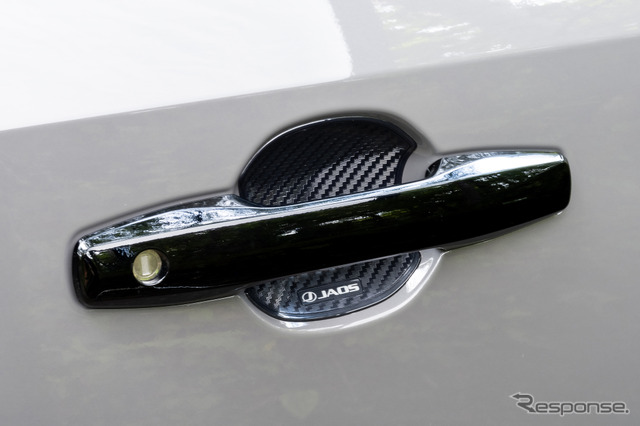 「ドアハンドルプロテクター」は、開閉時の傷からドアハンドル周辺を保護する樹脂製品で、カーボン調とジオメトリック柄が用意され、各5500円(税込)。そのほか「フューエルリッドプロテクター」5500円(税込)、「バックドアプロテクター」8800円(税込)、「バックドアスカッフプロテクター」1万3200円(税込)もラインナップされている。