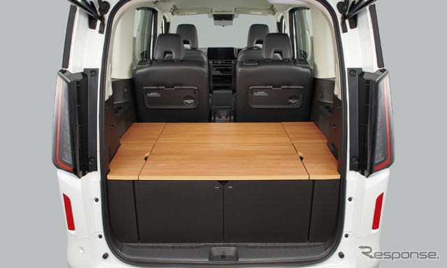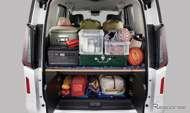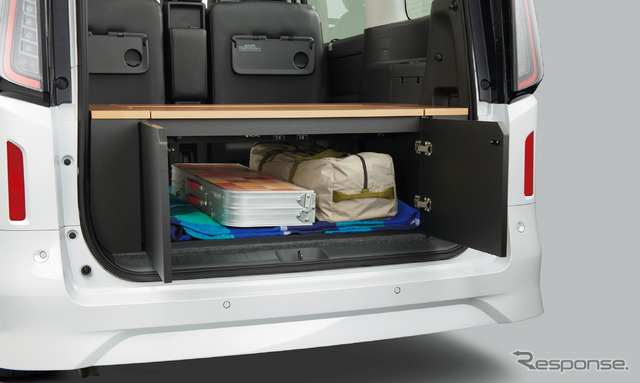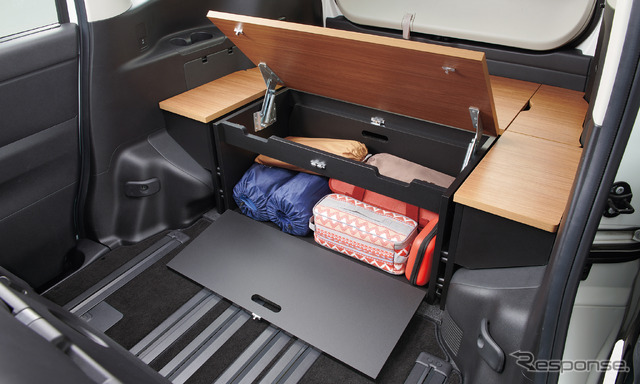 アウトドアアイテムなどの趣味の道具を整然と積めるだけでなく、災害時の非常持出し用品の保管場所などとしても活用できる。ボックス上にも荷物を乗せることができ、荷室を上下の空間で有効活用ができるほか、ボックス上面の天板の一部を持ち上げてテーブルとして使用することで、ボックスをベンチにして食事やデスクワークなどにも活用できる。