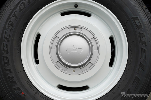 最大の特長は、印象の異なる2通りのスタイルを楽しめる2wayホイールだ。ひとつは、ウィリスMBのスピリットを受け継ぐコンセプトカー「ウィリス'41」から着想を得たクラシカルな佇まい。一方、シルバーの大型キャップを装着すると力強い存在感を放つ。いずれのセンターキャップにもウィリスMBのシルエットが刻印されている。