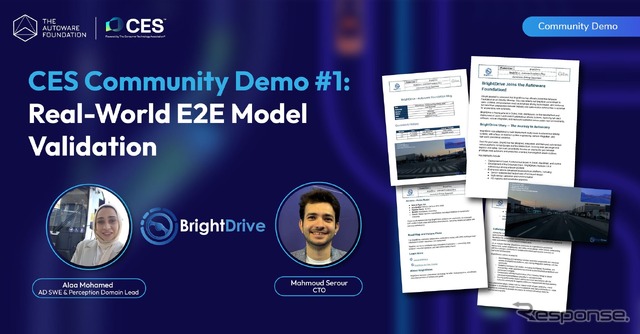 自動運転システムの開発・展開を手がけるブライトドライブ(BrightDrive)は、CES 2026において、Autoware End-to-End(E2E)AIモデルの公道検証結果を発表する。