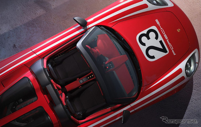 外観は1970年のル・マン24時間レースで優勝したポルシェ917へのオマージュとして、赤と白の「ザルツブルグデザイン」を再現。ゼッケン23を配し、カレラGTの複雑なボディラインに合わせてデザインを微調整、職人の手作業で塗装された。また、ルーフ、A・Bピラー、ドアミラー、エアダクト、ディフューザーにはマットブラックのカーボンパーツが装着されている。