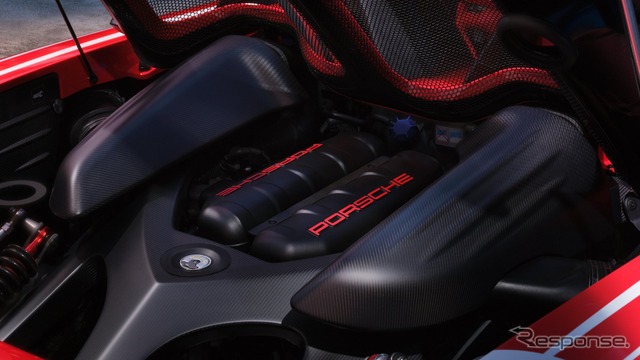 内装もゴメス氏の要望によりカスタムされ、ダッシュボード、ステアリング、ドアパネル、センターコンソールに赤のアルカンターラを潤沢に使用。専用ラゲッジセットも同素材で統一された。一方、シートシェルやメーターカバーにはマットカーボンを配し、シート中央部には『918スパイダー』由来の非燃性FIAテキスタイルを採用するなど、新旧技術が融合している。