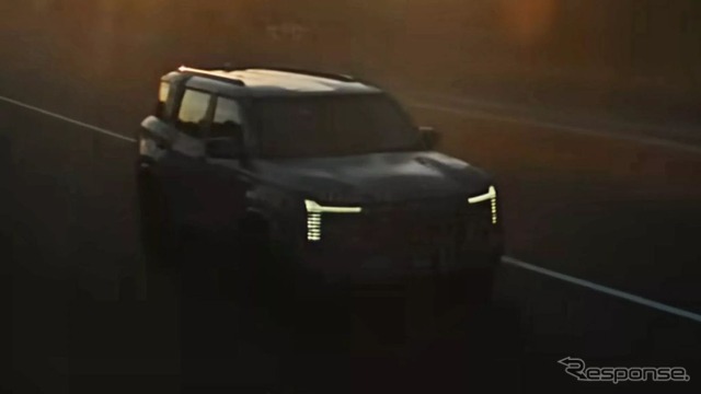 1分間の動画のラストシーンには、新型SUVと見られるプロトタイプが、LEDデイタイムランニングライトを輝かせて登場する。このプロトタイプが、『パジェロ』の後継SUVとなる可能性もある。