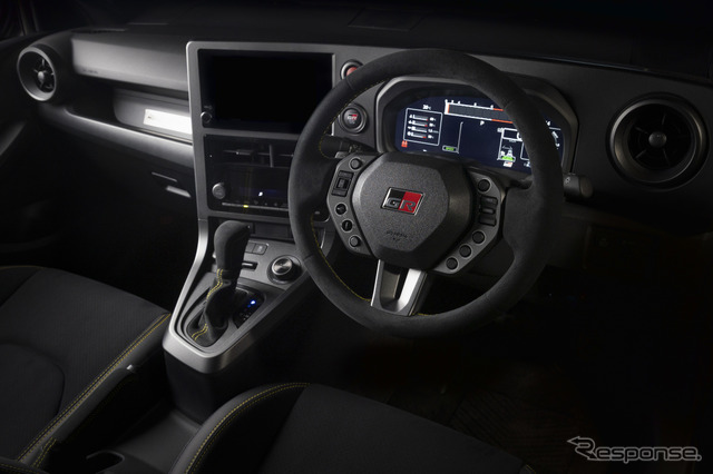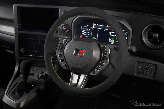 ブレーキキャリパーのほか、インテリアのステッチはモリゾウのシグネチャーカラーであるイエローとしている。スエード表皮を使ったステアリングホイールも専用装備。ステアリングホイールはモータースポーツにおける操作性を追求し、外径をひとまわり小径化するとともに、パドルシフトやステアリングスイッチの形状を変えている。