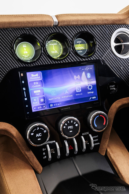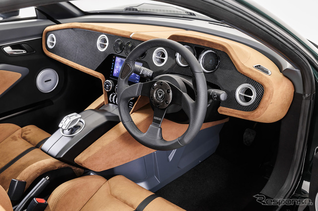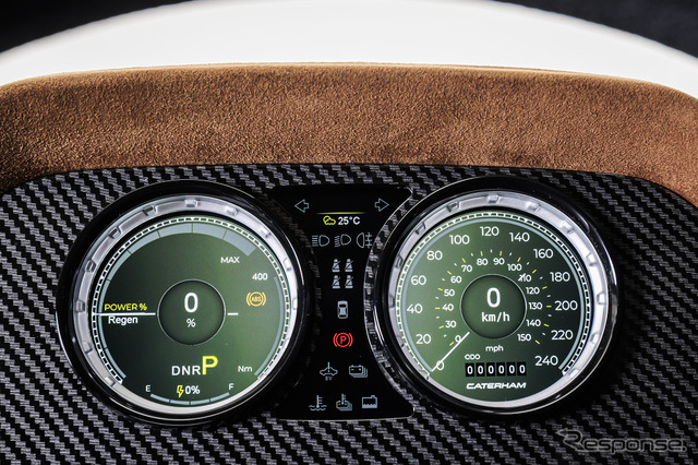 高効率システムで鋭いレスポンスとリニアな出力特性は、EVながらケータハムらしい“ファン・トゥ・ドライブ”を追求した。バッテリーは台湾XING Mobilityが開発した液浸冷却バッテリー「IMMERSIO Cell-to Pack」を採用し、過酷な条件下でも高い安全性と信頼性を確保。高出力と熱管理を両立。高性能なスポーツカーでありながら、バッテリー容量が47kWhとした場合の航続距離は400kmを実現するという。