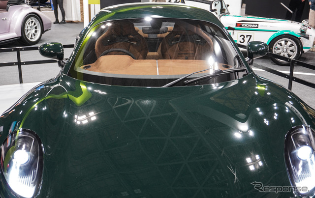 エクステリアはセブンから基本デザインを継承しつつ、法規制対応のためリアコンビネーションランプのデザインを変更。インテリアはフラットパネルのインストルメントパネルに丸型デジタルディスプレイを配置し、クラシカルな雰囲気と現代的機能を融合している。今回の展示車のボディカラーは英国車らしさを感じさせる深いグリーンとなっていた。
