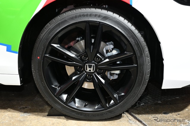 RS専用に開発されたサスペンションは、ロール剛性の向上とステアリング剛性の向上により、軽快でダイレクトな操舵と挙動の一体感を実現。「荒れた路面でも車体の揺れを抑制する、徹底的に性能を突き詰めたサスペンション」とホンダは謳う。5mmローダウン(1415mm→1410mm)しているのも見逃せないポイントだ。ブレーキはフロントディスクローターを大径化したRS専用にすることで、踏み始めからドライバーの意図した通りの減速度が発生し、コントロール性も向上させている。