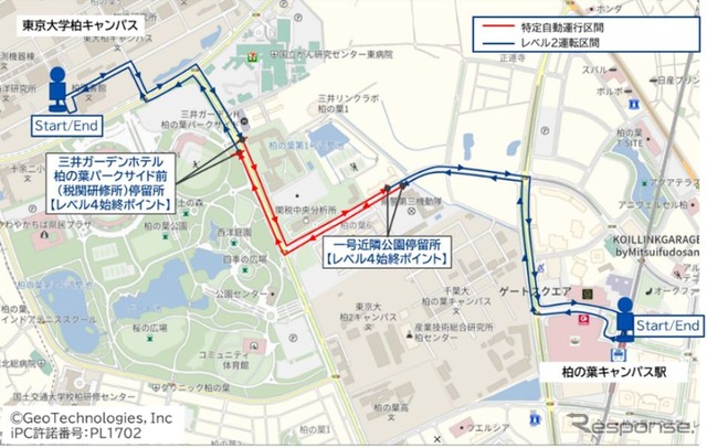 運行区間は東京大学柏キャンパス・シャトルバスルートの一部区間で、一号近隣公園停留所から三井ガーデンホテル柏の葉パークサイド前(税関研修所)停留所までが特定自動運行区間となる。最高速度は40km/hとなる。