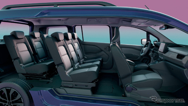 ホイールベースの延長によりスライドドアの開口幅は830mmとカングーより180mm広がり、3列目シートへの乗降性が向上した。2列目と3列目は前席より座面が高いシアターポジションを採用し、全席から良好な視界を確保している。