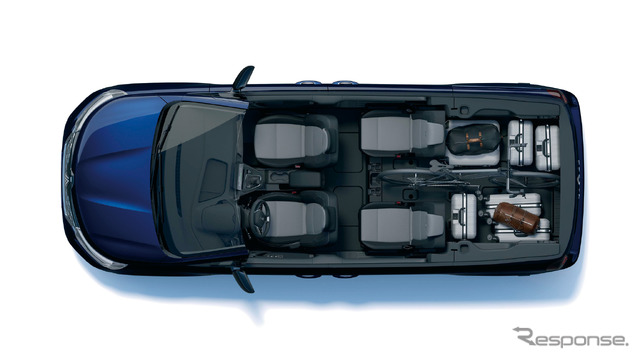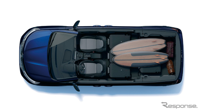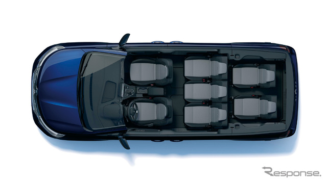 グランカングー・クルールは『カングー』のホイールベースと全長を延長したモデルで、全長は4490mm(カングーより420mm増)、ホイールベースは3100mm(同390mm増)としている。広くなった室内には独立した3列7シートを装備し、2列目と3列目はスライド、折り畳み、跳ね上げ、取り外しが可能だ。シート配置のバリエーションは1024通りに上るという。