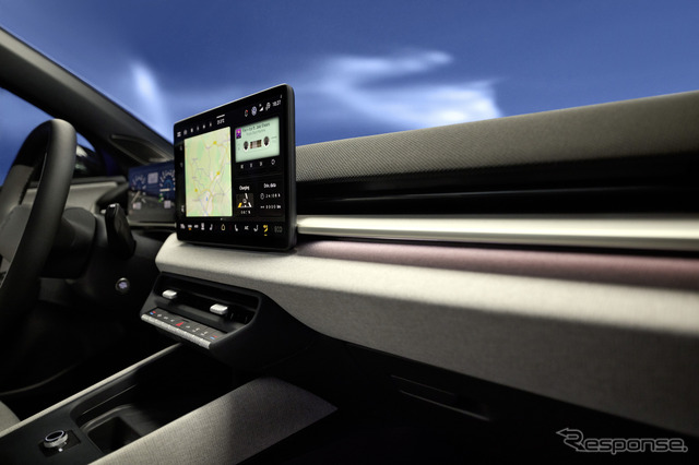 コックピットは明確な水平方向の配置が特徴だ。ステアリングホイール後方には26cm(10.25インチ)のデジタルコックピット、中央には33cm(約13インチ)のインフォテインメントシステムのタッチスクリーンを配置。2つの大型ディスプレイが一直線上に並ぶ。グラフィックは高解像度で精密、中央ディスプレイは助手席からも操作しやすい位置にある。