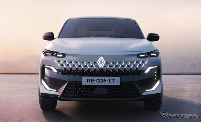 フロントエンドは、ルノーのダイヤモンドロゴにインスパイアされた立体的なイルミネーション付きグリルが特徴で、ボディカラーからグロスブラックへの視覚的な変化を見せる。薄型LEDヘッドライトはボディと面一に配置され、デイタイムランニングライトはルノーエンブレムの幾何学形状を参照した28度の角度を形成している。